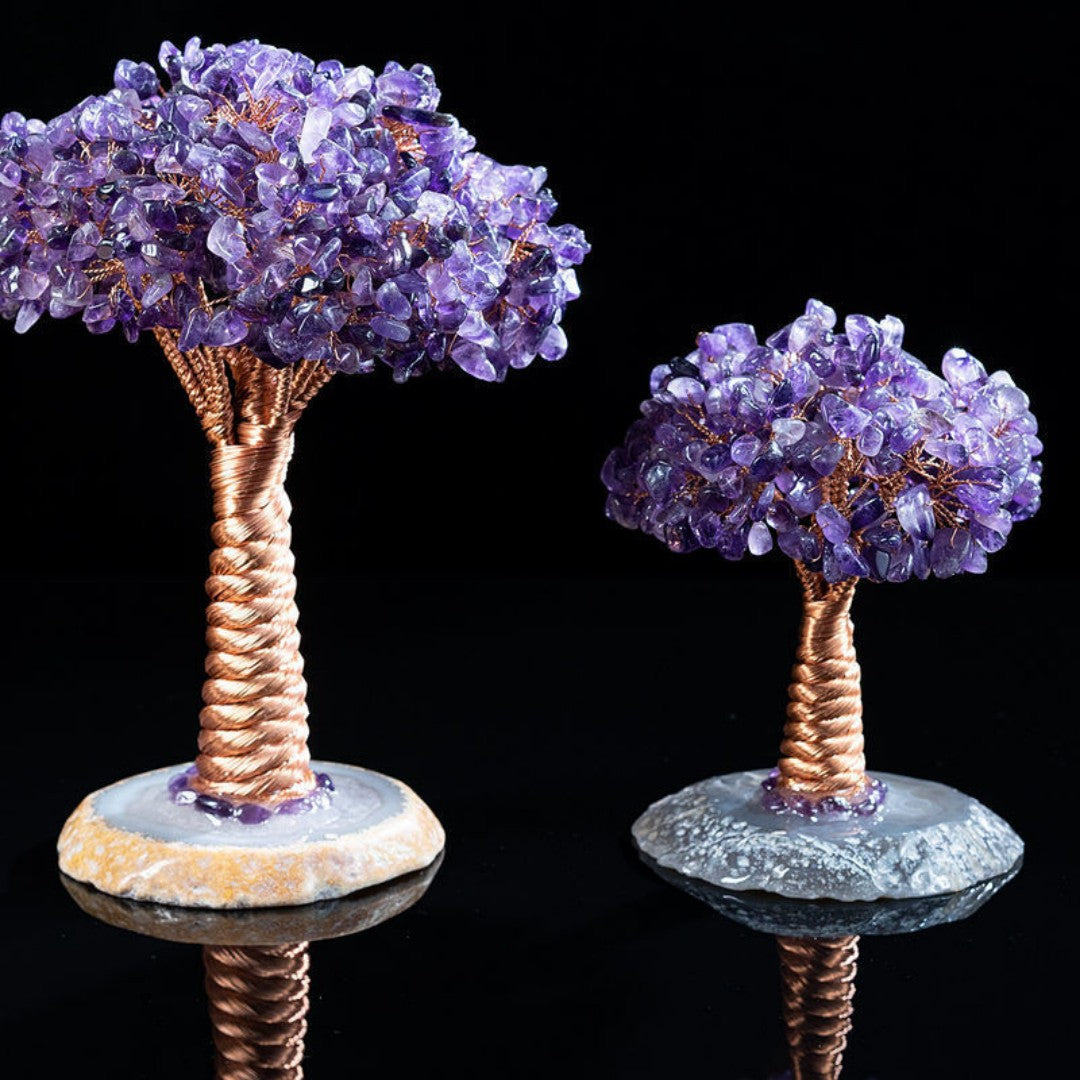 Amethyst Feng Shui Money Tree - Wealth & Intuition Energy with Natural Agate Base (Large/Small)