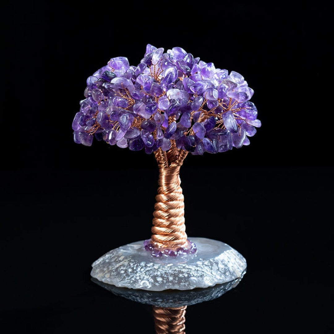 • Bring tranquil energy into any room with our Amethyst Crystal Feng Shui Tree. The deep purple amethyst gemstones are renowned for inspiring clarity, calmness, and balance.