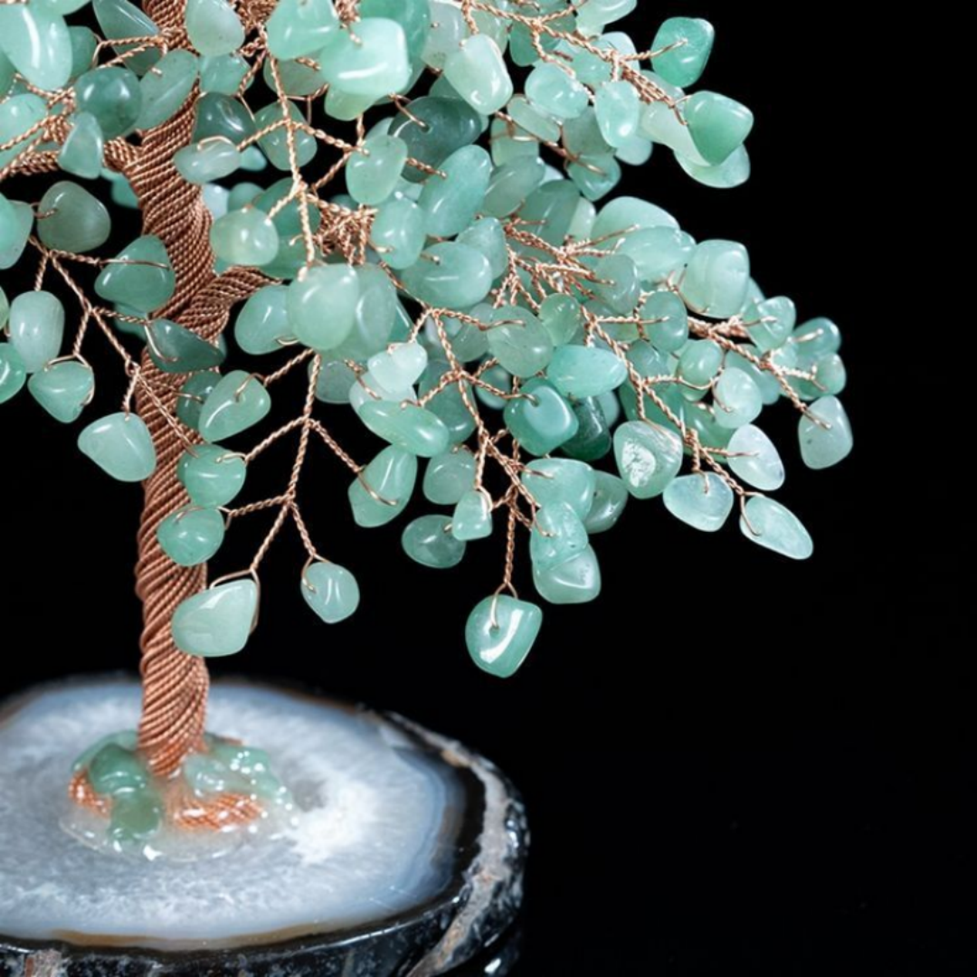 • Here is our Large Green Aventurine Crystal Tree on an agate base – a verdant emblem of luck and renewal.