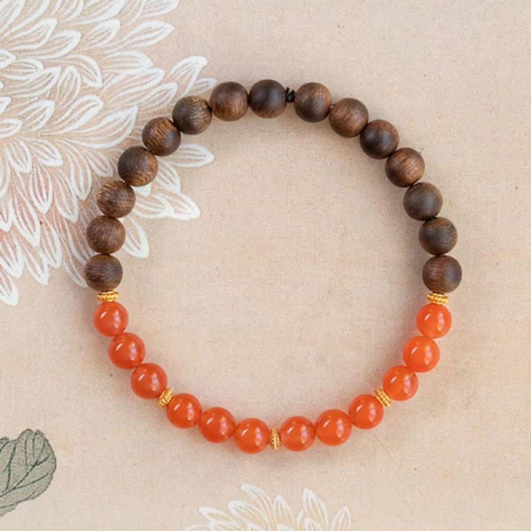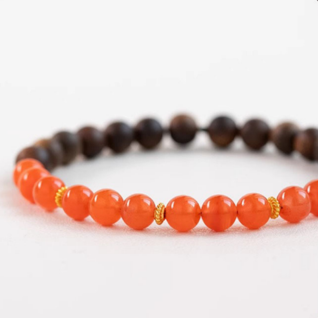 Kyara Agarwood & Carnelian Bracelet - Spiritual Grounding for Emotional Balance