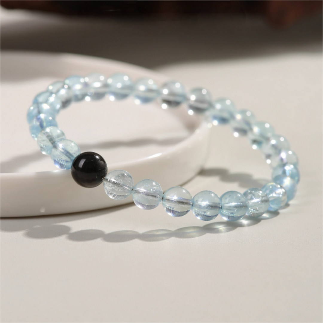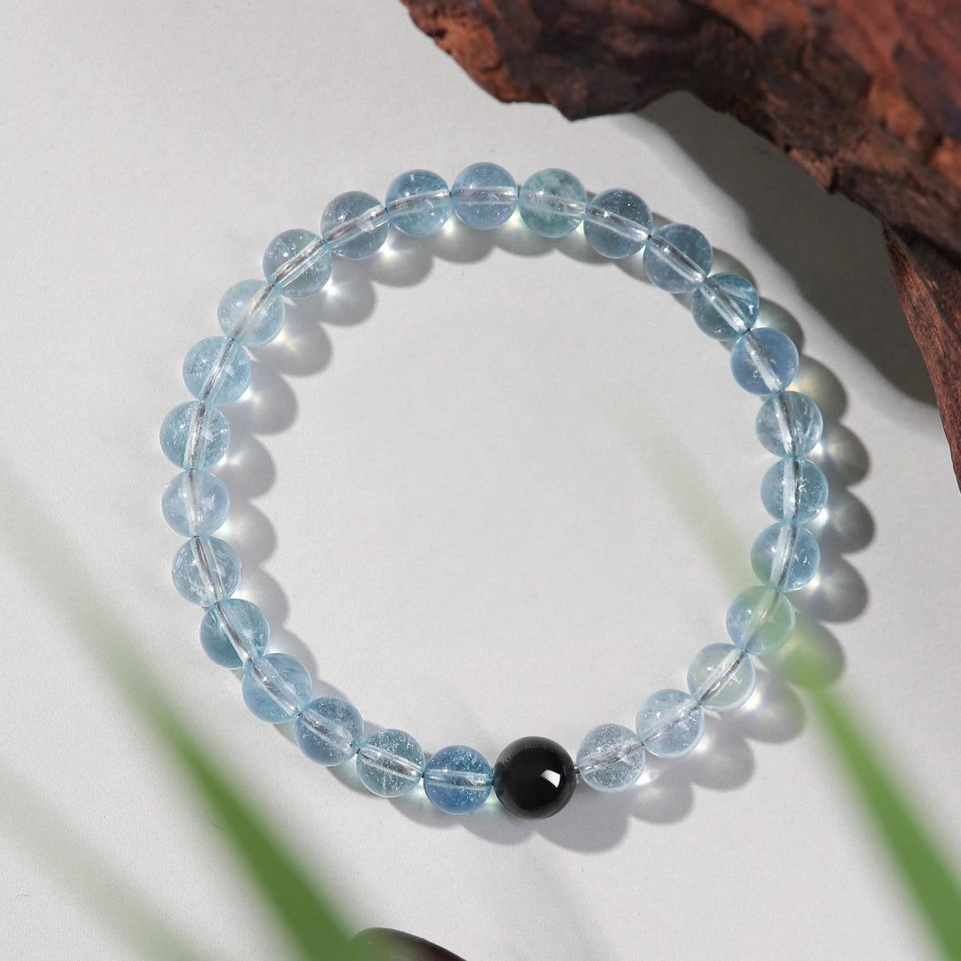 Five Elements Water Bracelet – Aquamarine & Black Obsidian Feng Shui Jewelry
