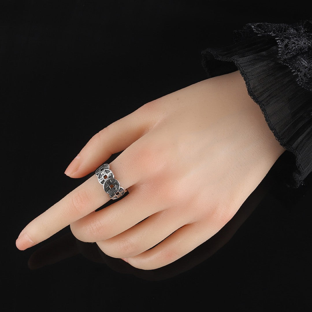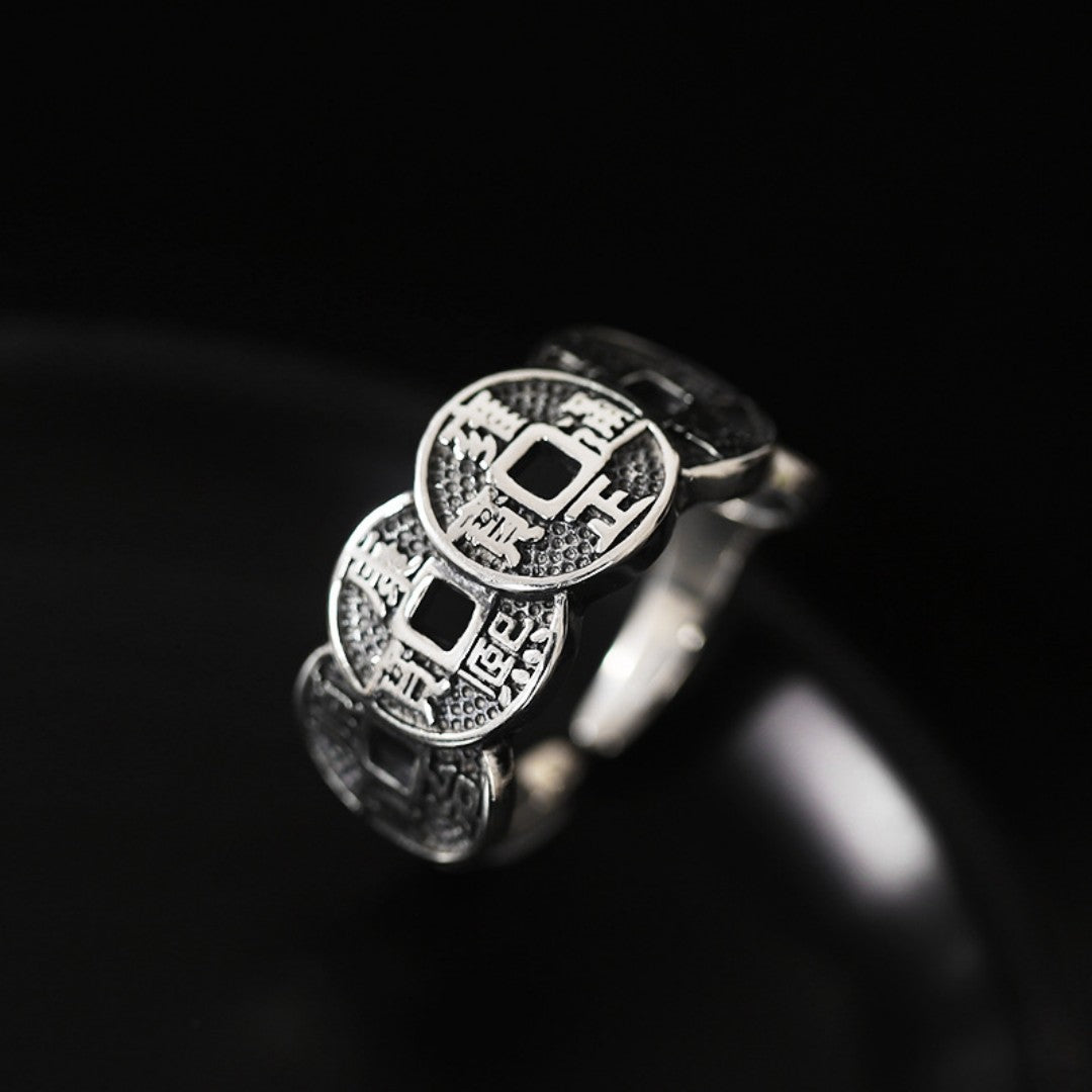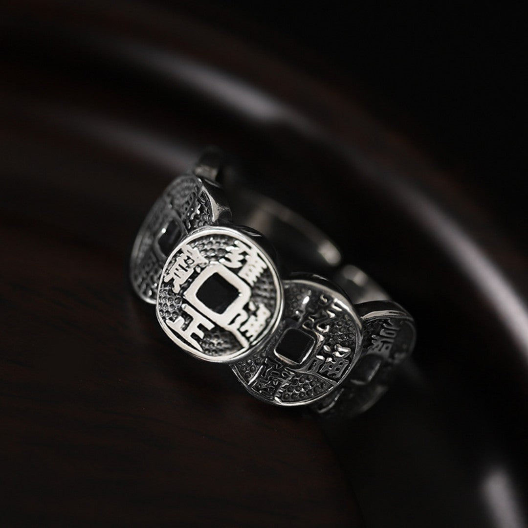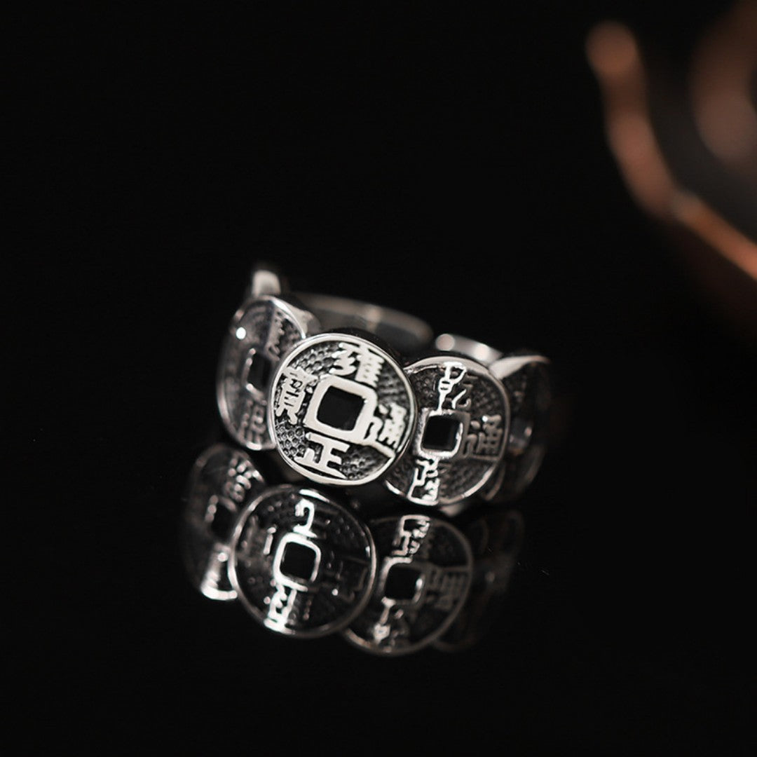 Five Emperor Coins Ring - Ancient Chinese Prosperity Amulet Sterling Silver