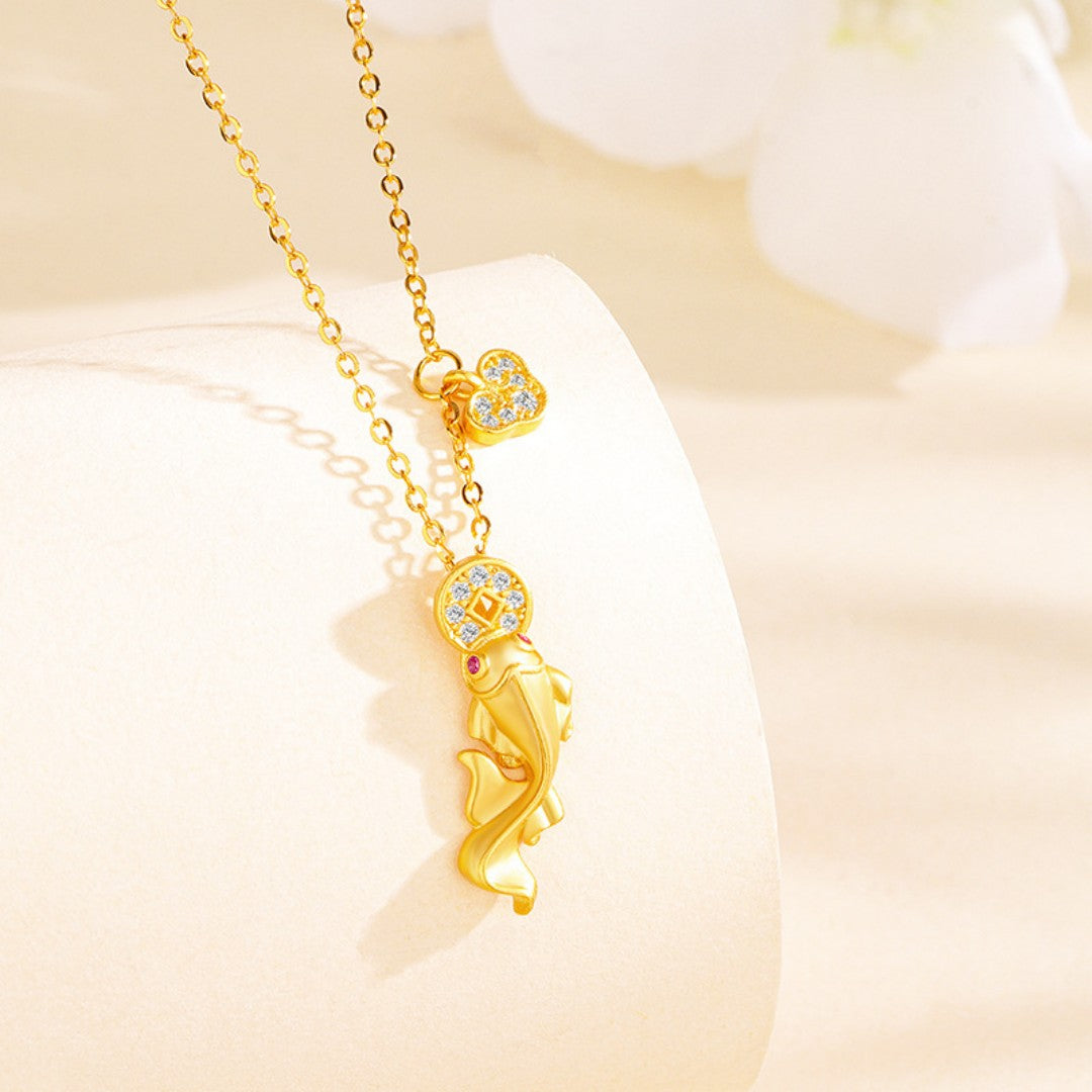 Koi Fish Abundance Necklace - Sterling Silver Perseverance Talisman for Overcoming Obstacles