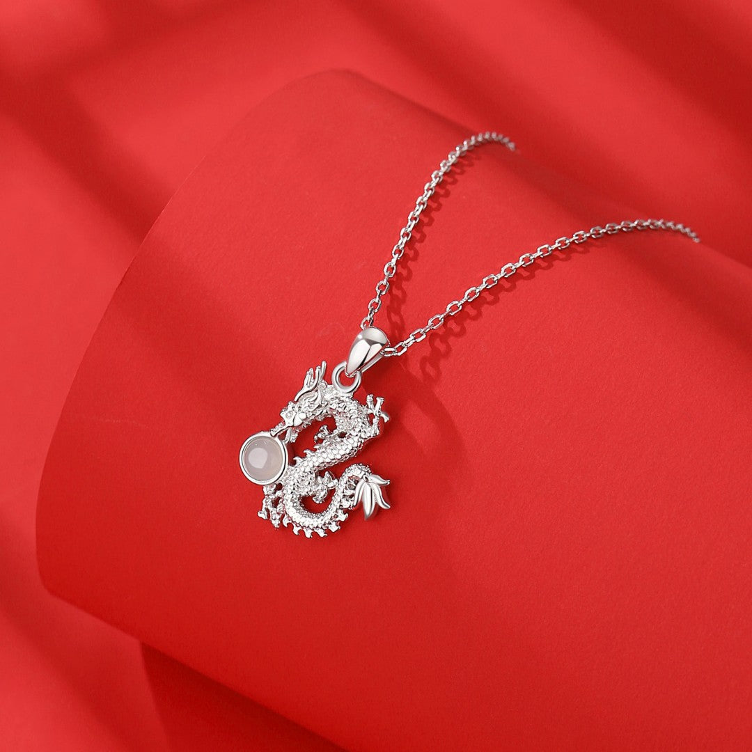 Silver Dragon Pendant - Wisdom Keeper Necklace with Carnelian/Jade