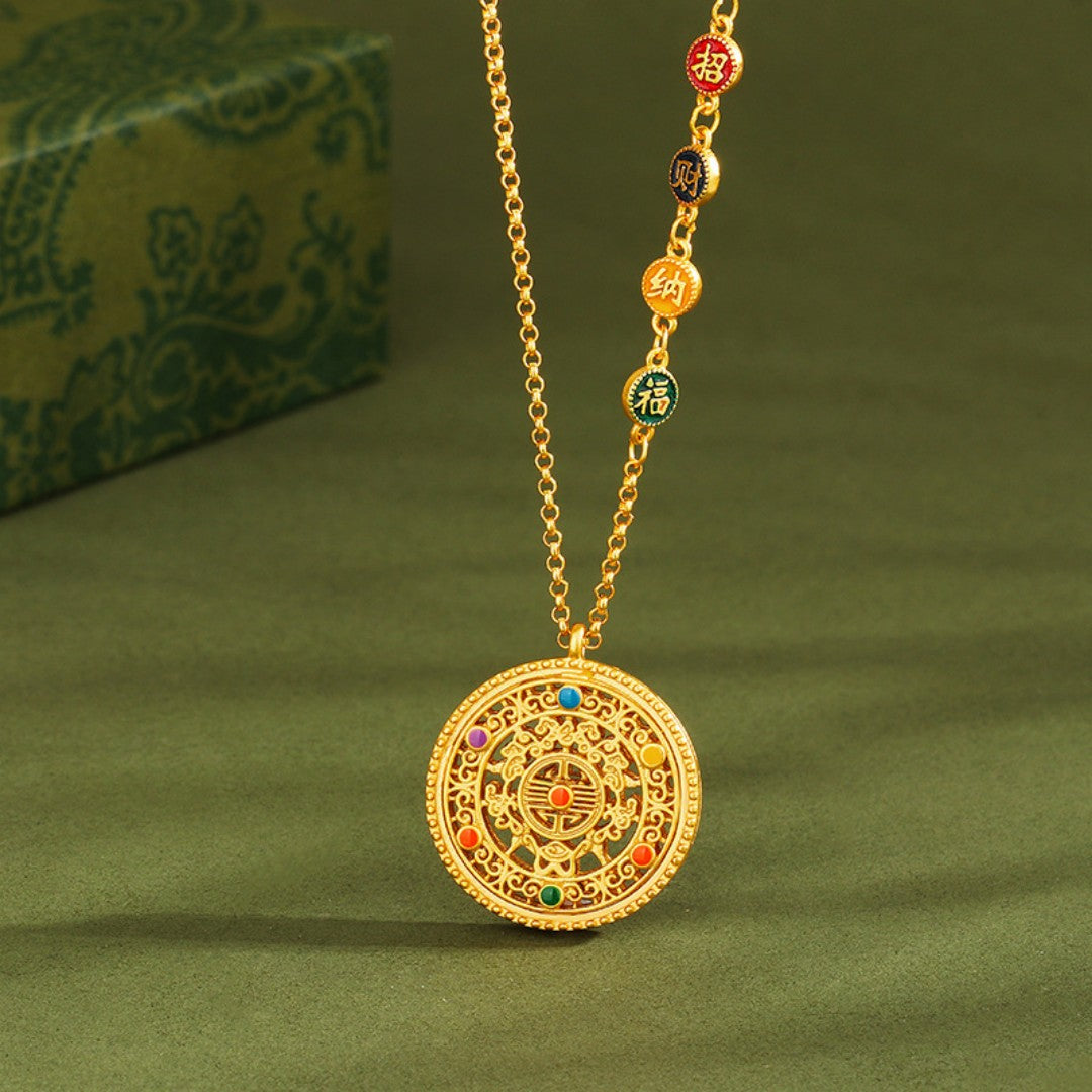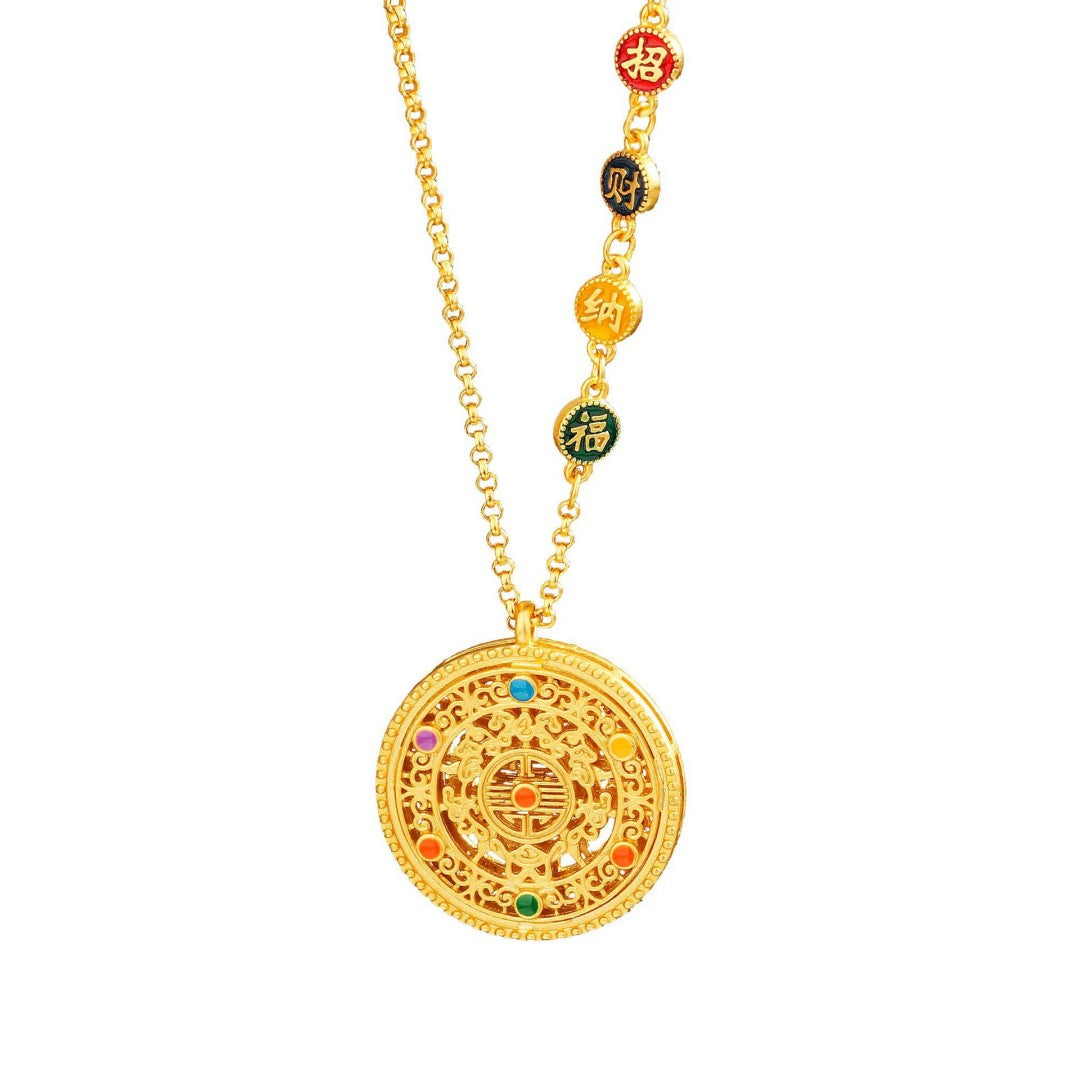 Eight Treasures Compass Sterling Silver Necklace (Gold Plated) - Feng Shui Wealth for Opportunities