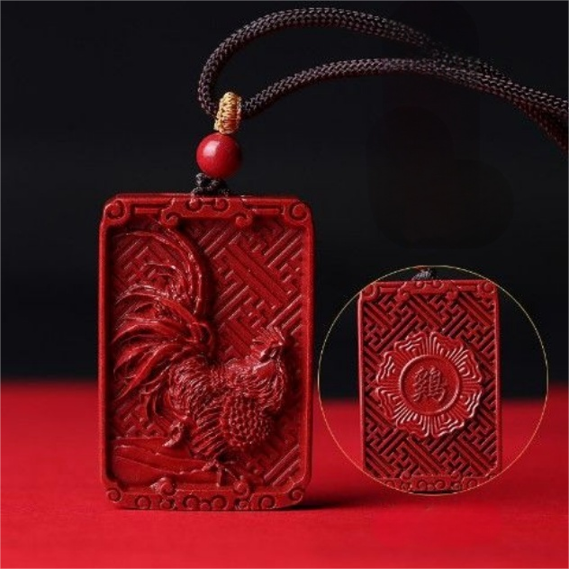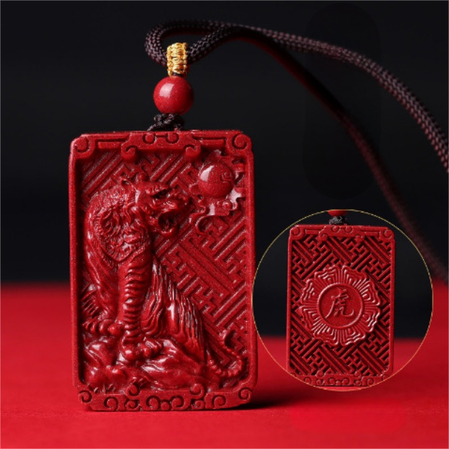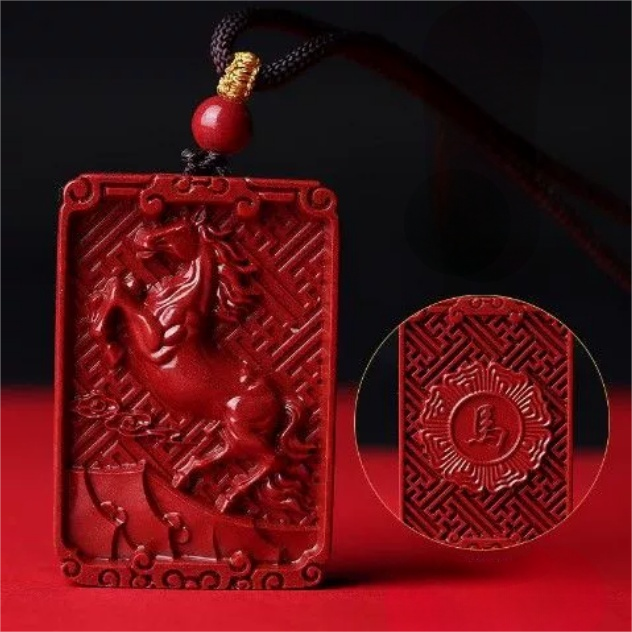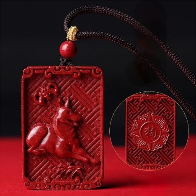 Cinnabar Zodiac Pendant Necklace – Chinese Zodiac Lucky Amulet for Year of Birth (12 Signs)